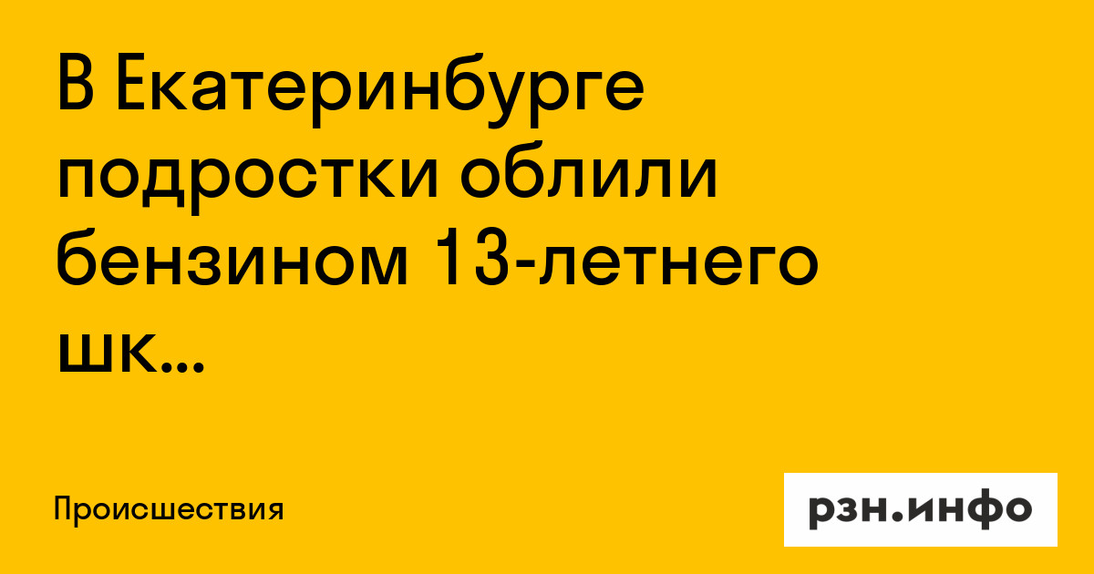 В Екатеринбурге двое подростков облили бензином 13-летнего мальчика и подожгли. Об этом сообщает URA.ru.