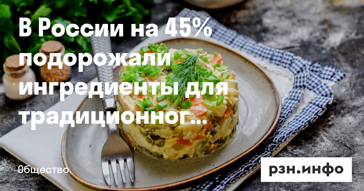 В России на 45% подорожали ингредиенты для салата «Оливье». Об этом сообщает Mash.