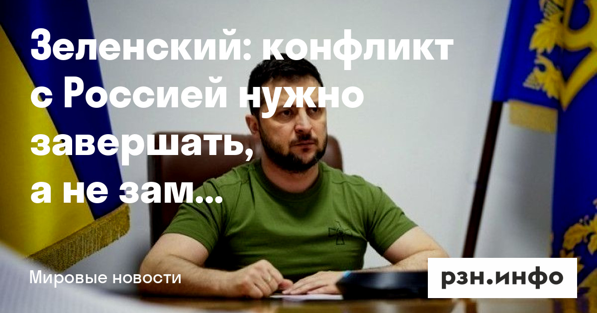Зеленский заявил, что конфликт с Россией нужно завершать, а не замораживать. Его слова приводит ТАСС.
