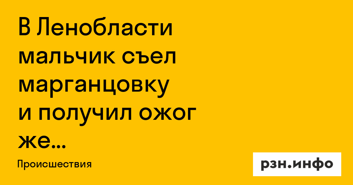 В Ленинградской области 19 ноября двухлетний мальчик получил ожог желудка после того, как съел марганцовку. Об этом сообщил источник РЕН ТВ.