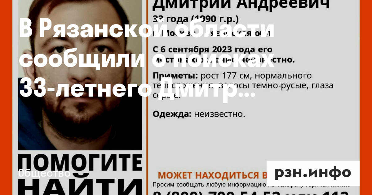 В Рязанской области сообщили о поисках 33-летнего Дмитрия Никишина