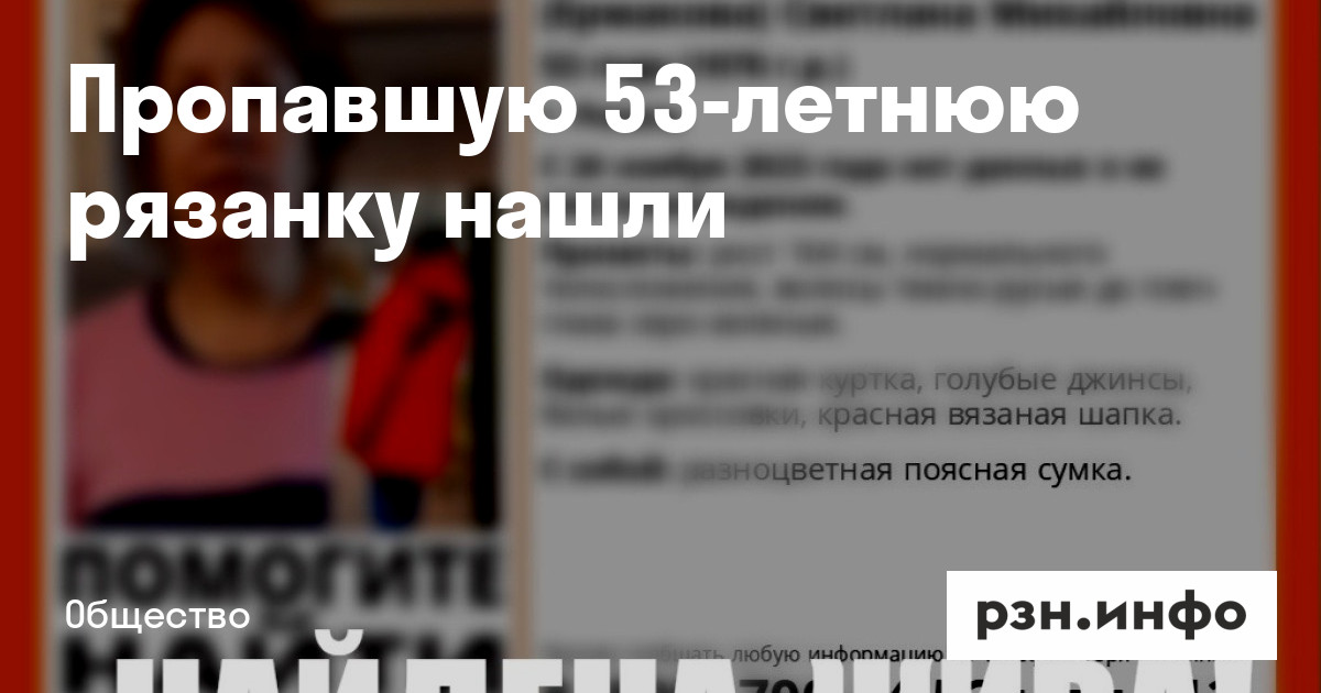 Напомним, 53-летняя рязанка пропала накануне.