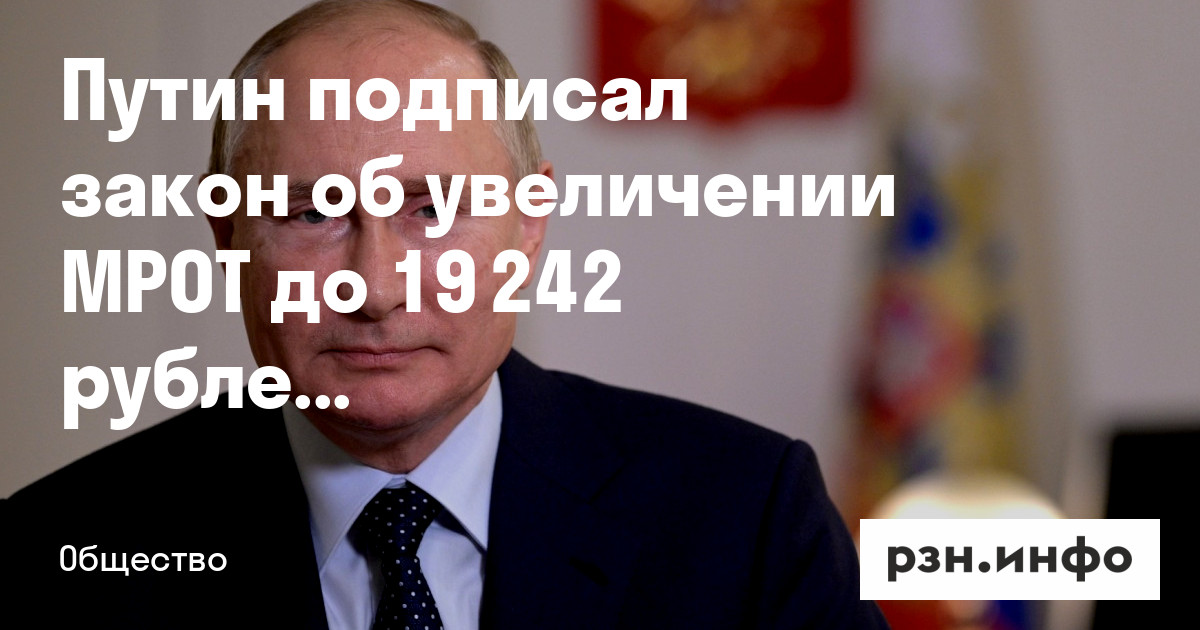 Путин подписал закон об увеличении МРОТ до 19 242 рублей