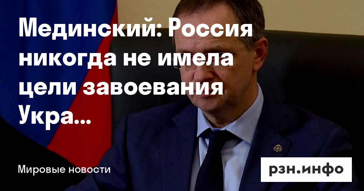 Помощник президента РФ Владимир Мединский заявил, что Россия никогда не имела цели завоевания Украины, это Запад и Владимир Зеленский развязали полномасштабные боевые действия. Его цитирует ТАСС.
