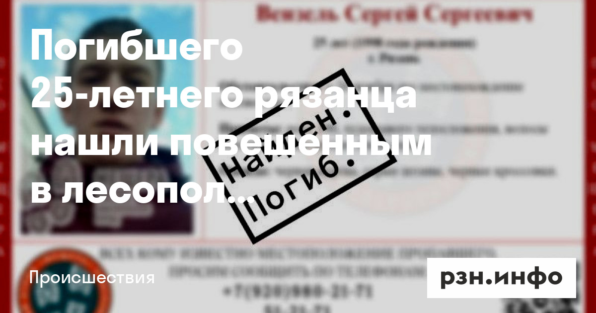 Напомним, что рязанец пропал 26 ноября. 28 ноября его нашли мертвым.