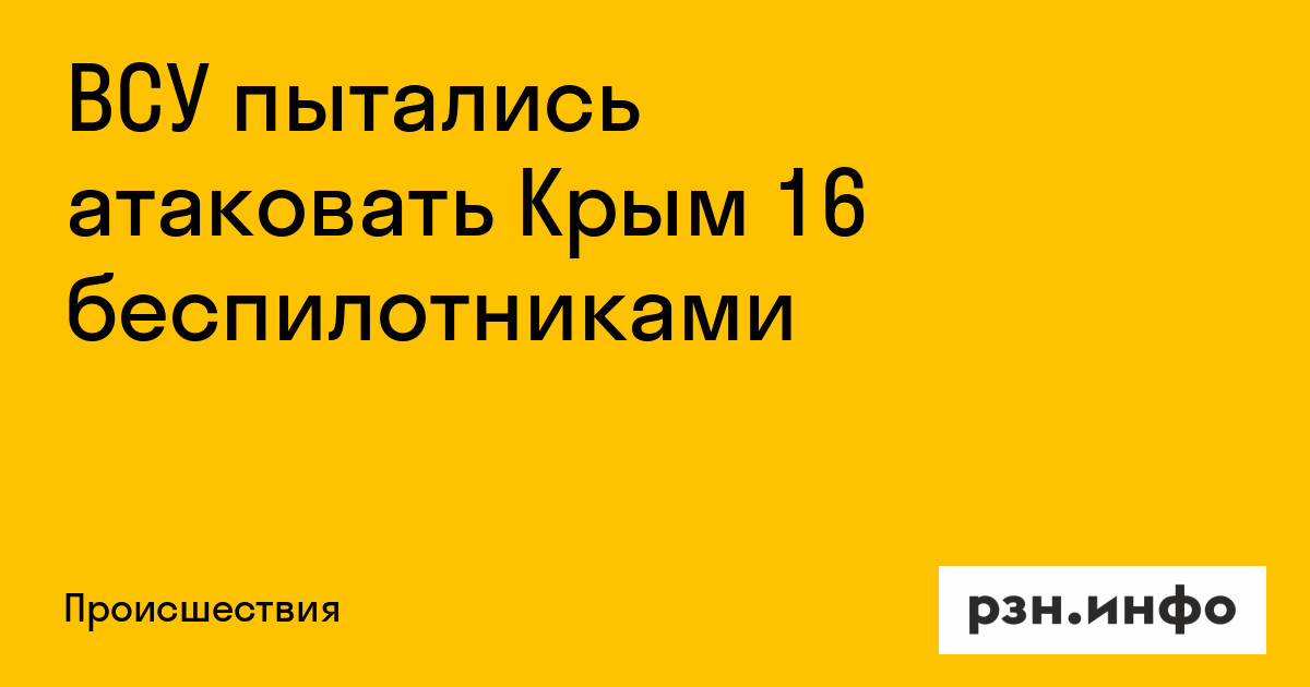 ВСУ пытались атаковать Крым 16 беспилотниками. Об этом сообщил Telegram-канал Mash.