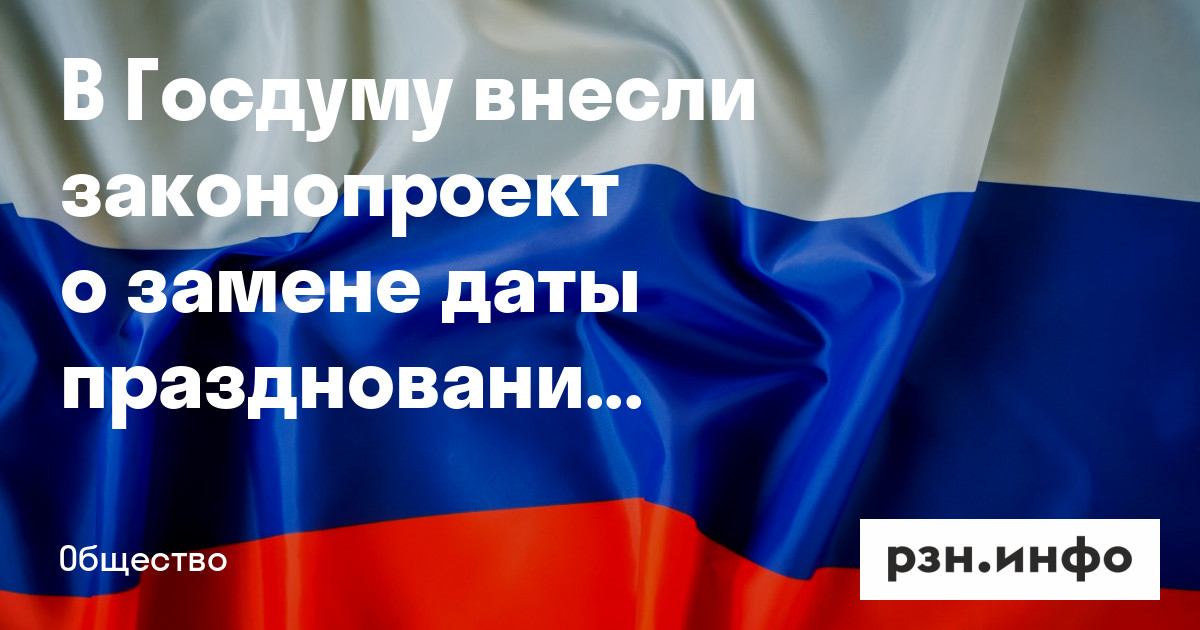 В Госдуму внесли законопроект о замене даты празднования Дня России. Об этом сообщает РИА Новости.