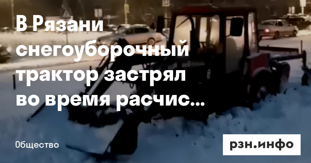 В Рязани снегоуборочный трактор застрял во время расчистки дороги