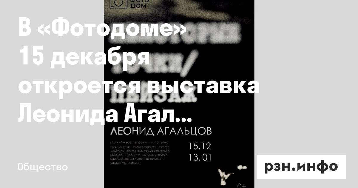 В «Фотодоме» 15 декабря откроется выставка Леонида Агальцова «Некоторые точки/пейзажи»