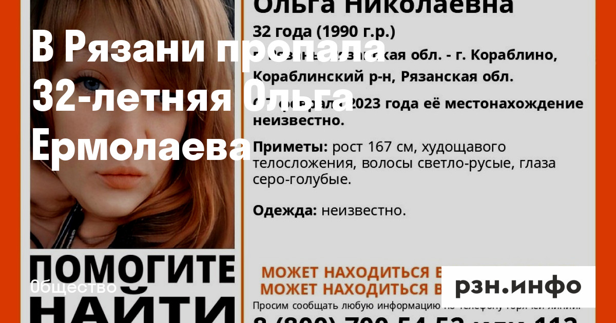 Ее ищут в Рязани, а также в Кораблине.