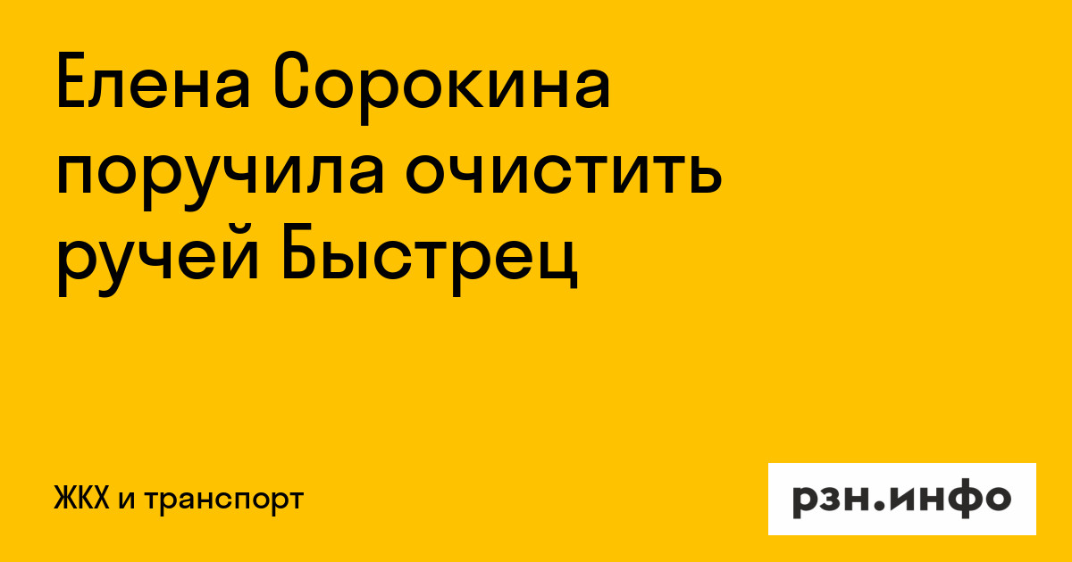 Елена Сорокина поручила очистить ручей Быстрец