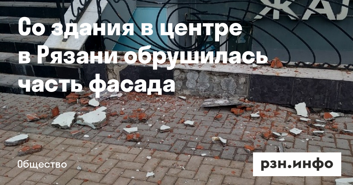 Со здания в центре в Рязани обрушилась часть фасада