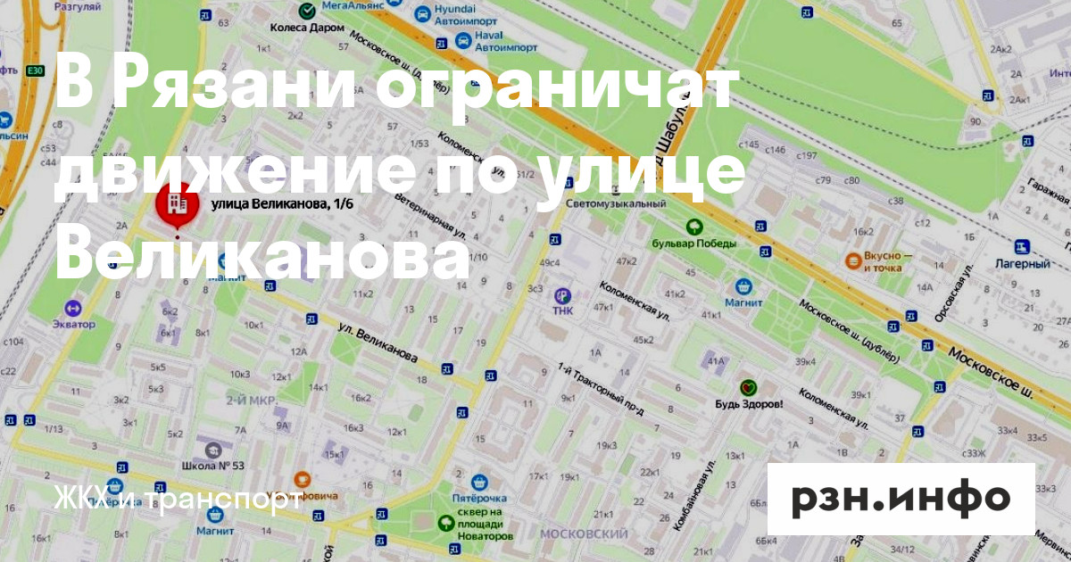 В Рязани ограничили движение по улице Великанова