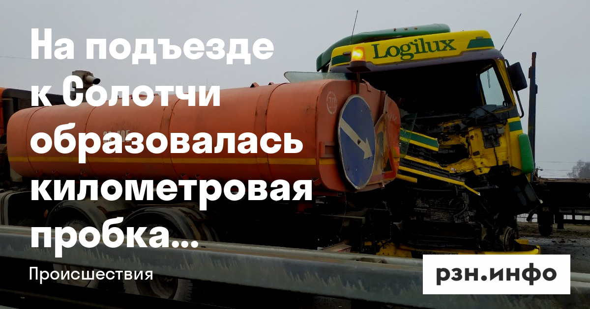 Авария случилась после моста в сторону Солотчи. На фотографии видно, что у большегруза сильно смят кузов.