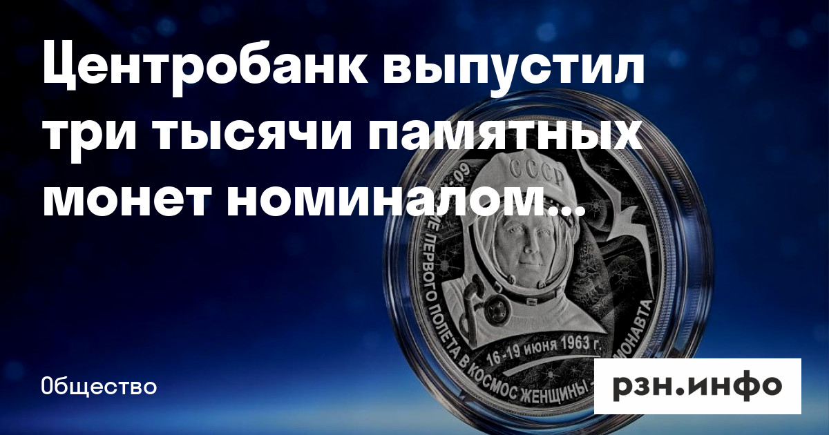 Банк России выпускает в обращение памятные серебряные монеты номиналом 3 рубля в честь «60-летия первого полета в космос женщины-космонавта». Об этом сообщает ТАСС со ссылкой на Центробанк.
