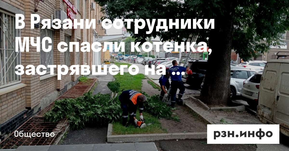 Рязани сотрудники МЧС спасли котенка, застрявшего на дереве. Об этом РЗН. инфо сообщила читательница.