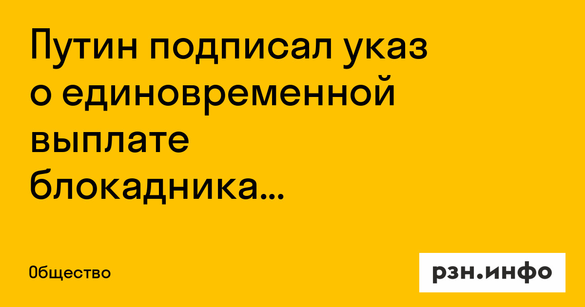Президент России Владимир Путин подписал указ о единовременной выплате гражданам РФ, награжденным медалью «За оборону Ленинграда» или знаком «Жителю блокадного Ленинграда». Об этом сообщило РИА Новости.