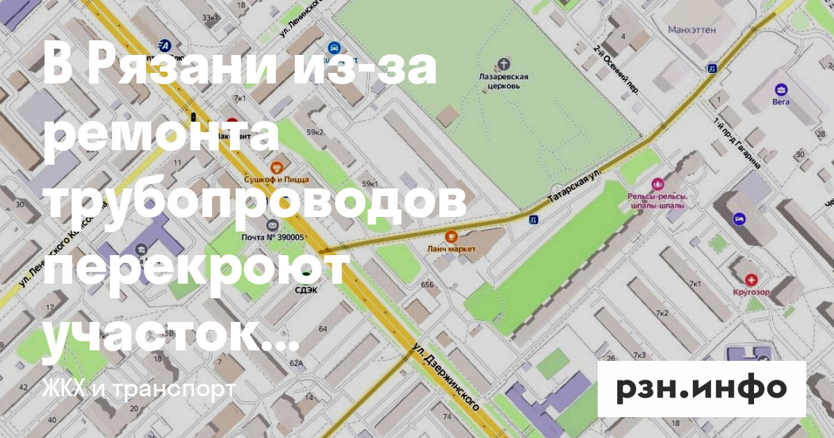 В Рязани из-за ремонта трубопроводов перекроют участок улицы Татарской