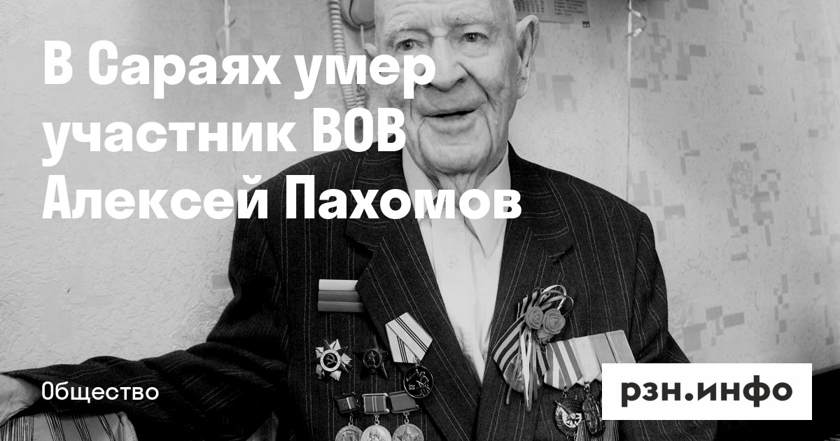 В Сараях умер участник Великой Отечественной войны Алексей Пахомов. Об этом сообщает ИД «Пресса».