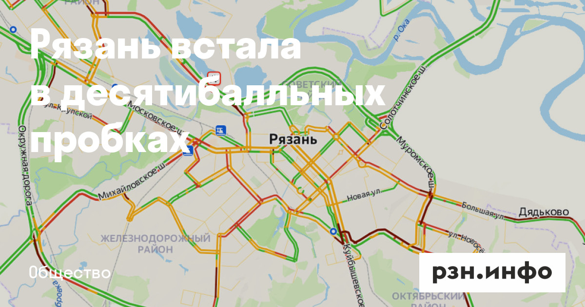 Рязань встала в десятибалльных пробках. Об этом свидетельствуют данные сервиса «Яндекс.Карты».