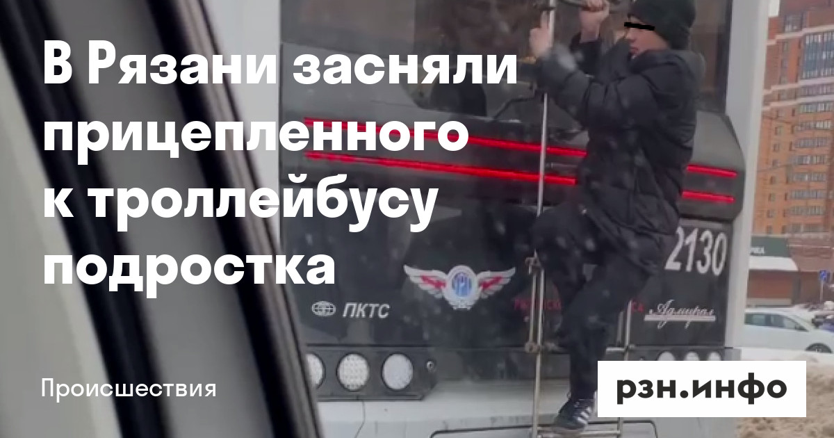 В Рязани заметили подростка, который катался на троллейбусе, зацепившись за него снаружи. Видео опубликовано в Telegram-канале «Рязань. Происшествия».
