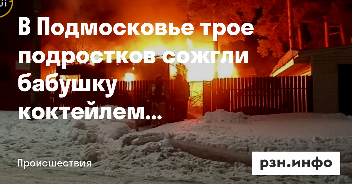 Трое подростков сожгли бабушку коктейлем Молотова в Подмосковье. Они бросили бутылку в окно, пенсионерка не смогла выбраться из горящего дома. Об этом пишет SHOT.