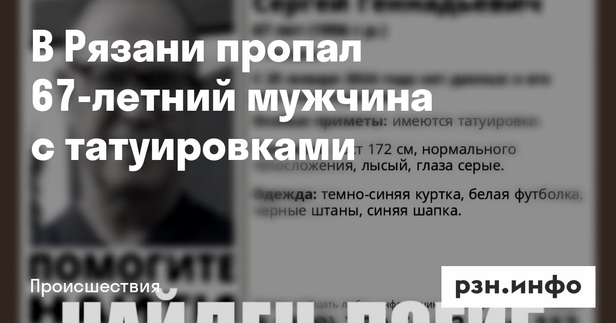 В Рязани пропал 67-летний мужчина с татуировками
