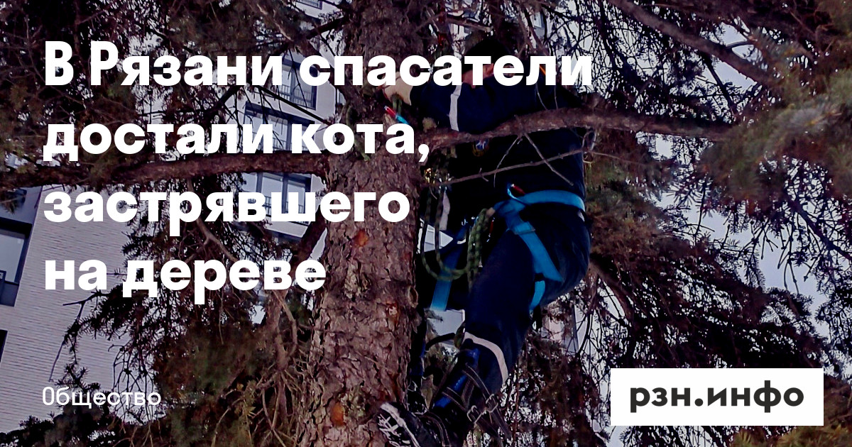 В Рязани спасатели достали кота, застрявшего на дереве