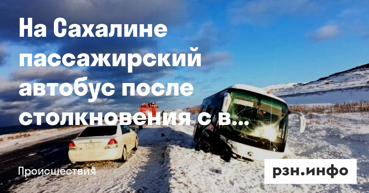 На Сахалине пассажирский автобус после столкновения с внедорожником съехал в кювет