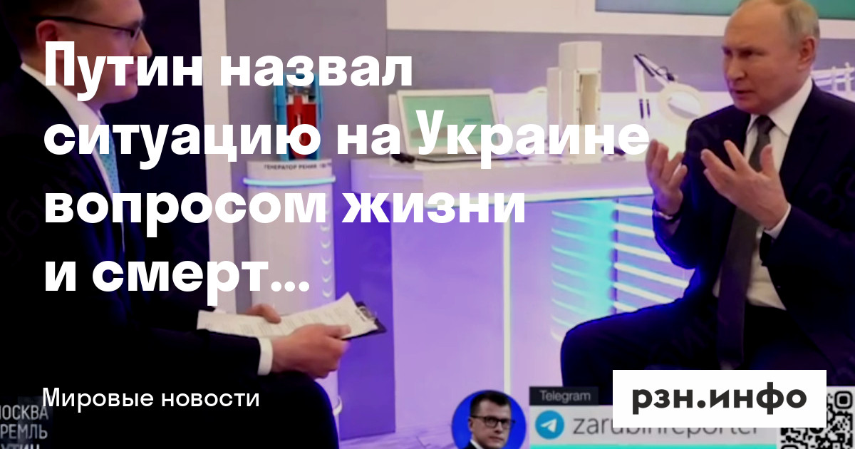 Владимир Путин назвал ситуацию на Украине вопросом жизни и смерти для России. Об этом президент заявил журналисту Павлу Зарубину, комментируя «историческую часть» своего интервью Такеру Карлсону.