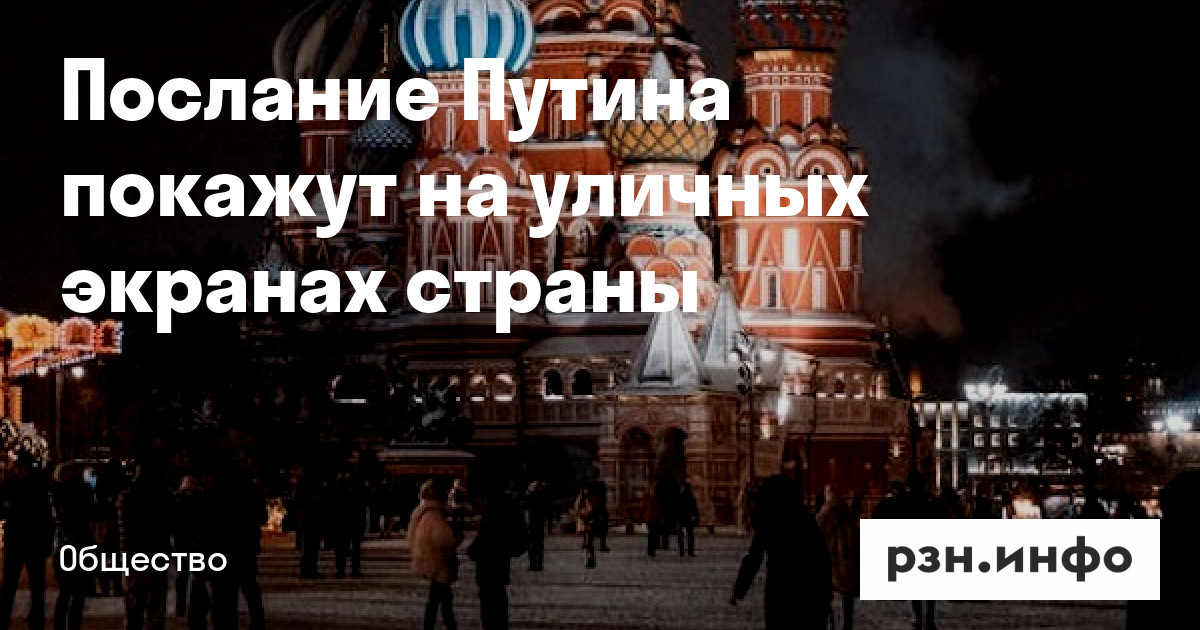 В России 29 февраля послание президента Владимира Путина Федеральному Собранию покажут на больших уличных экранах. Об этом пишет ТАСС со ссылкой на пресс-службу оператора имиджевой рекламы МАЕР.