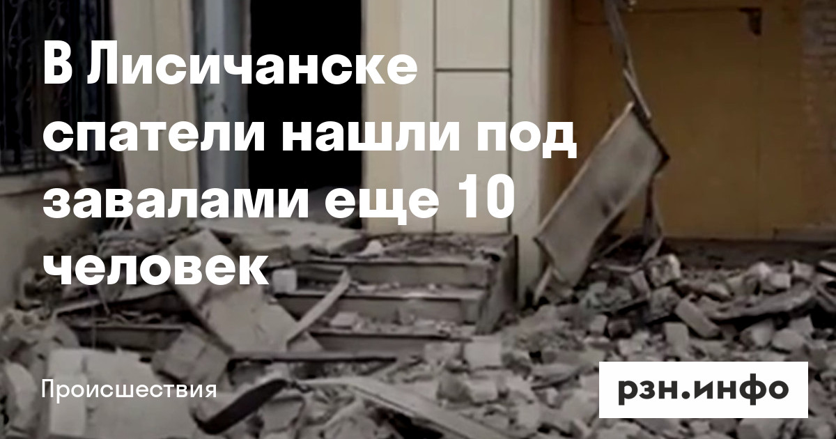 Спасатели обнаружили под завалами в Лисичанске еще 10 человек, среди них есть погибшие. Ранее в Минздраве ЛНР сообщили, что количество жертв при обстреле пекарни увеличилось до восьми.