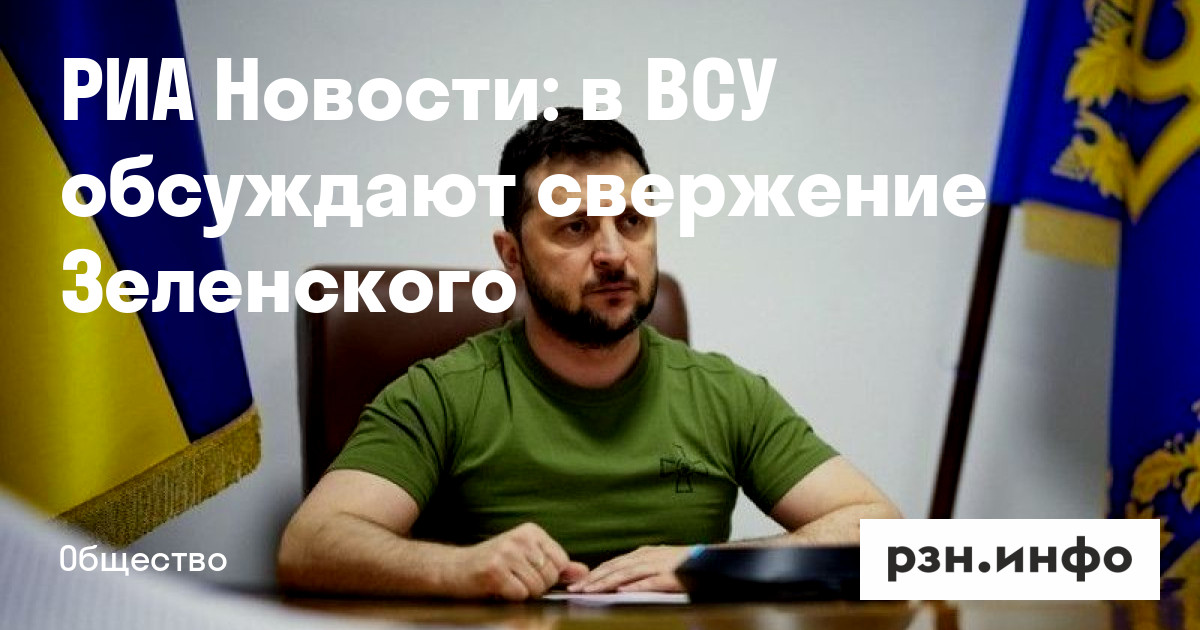 РИА Новости: в ВСУ обсуждают свержение Зеленского