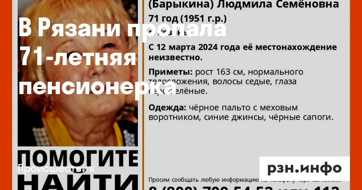 В Рязани пропала 71-летняя пенсионерка
