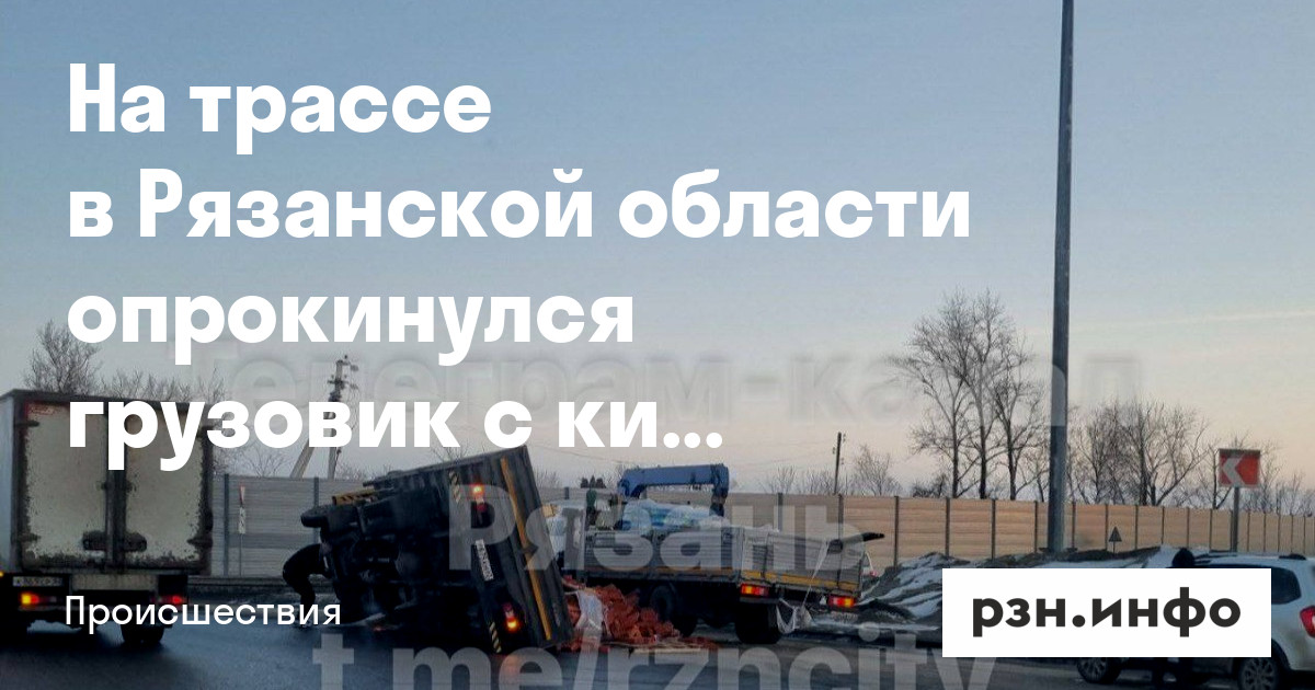 На трассе в Рязани опрокинулся грузовик с кирпичами. Об этом сообщает Telegram-канал «Рязань».