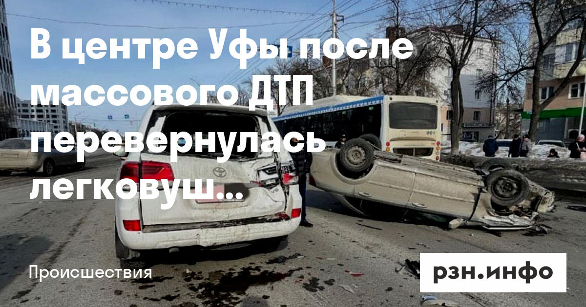 В центре Уфы после массового ДТП перевернулась легковушка