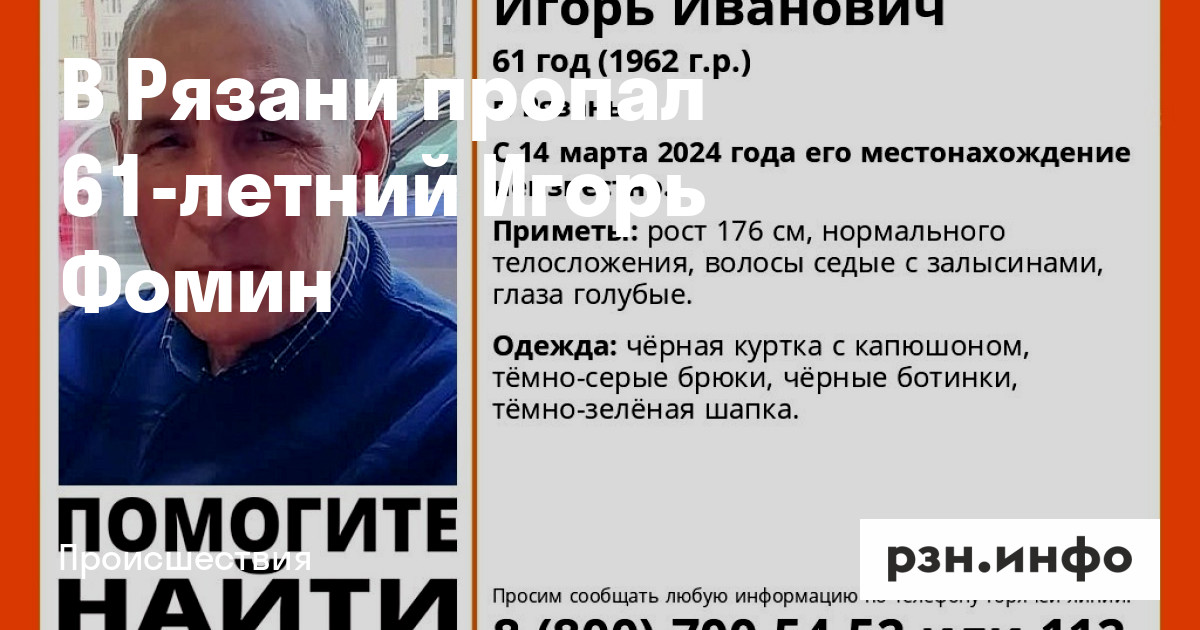В Рязани пропал 61-летний Игорь Фомин