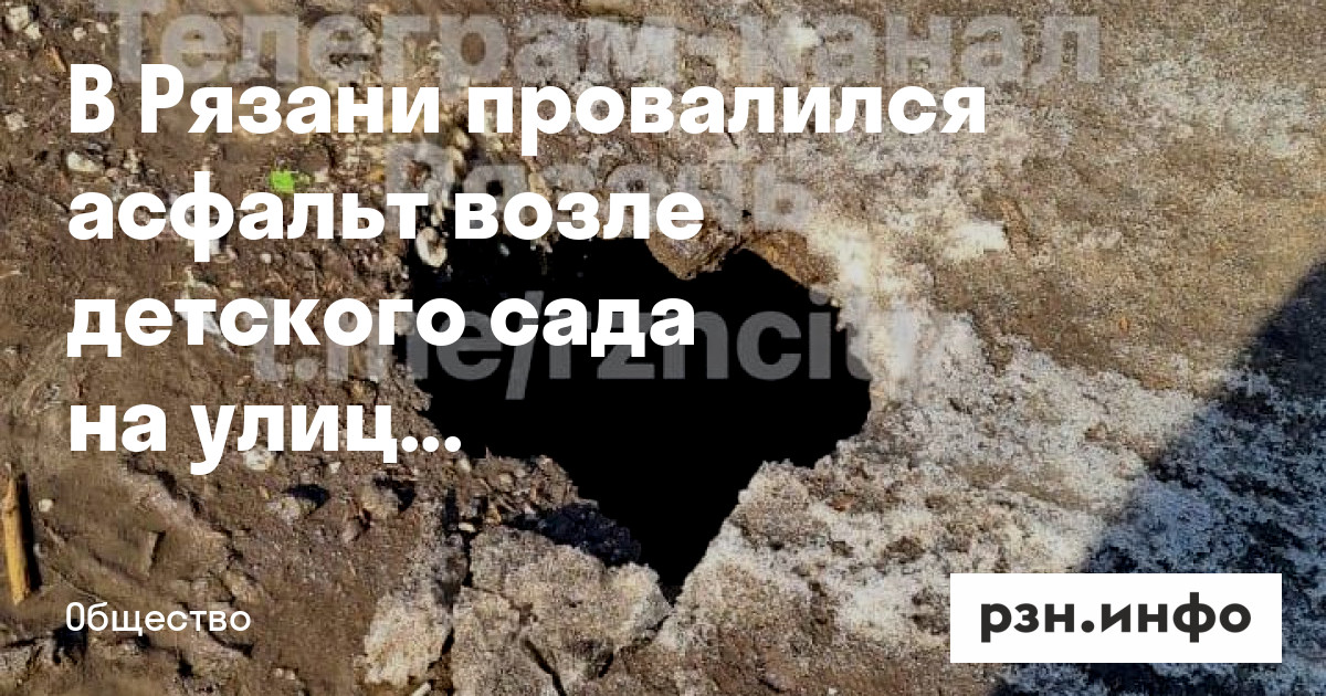 В Рязани провалился асфальт возле детского сада на улице Новикова-Прибоя. Пост об этом появился в Telegram-канале «Рязань».