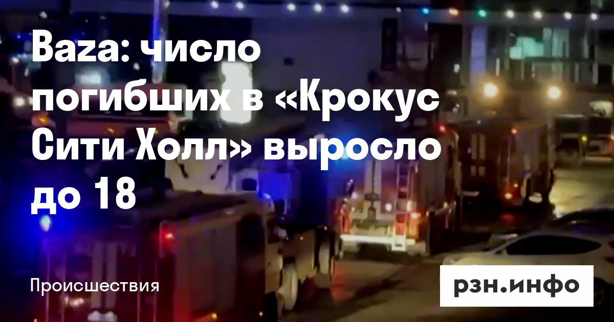 Число погибших в «Крокус Сити Холл» выросло до 18, ранены как минимум 143 человека. Об этом пишет Telegram-канал Baza.