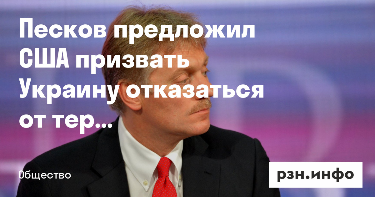 Пресс-секретарь президента России Дмитрий Песков предложил США призвать Украину отказаться от терроризма. Об этом пишет РЕН.ТВ.