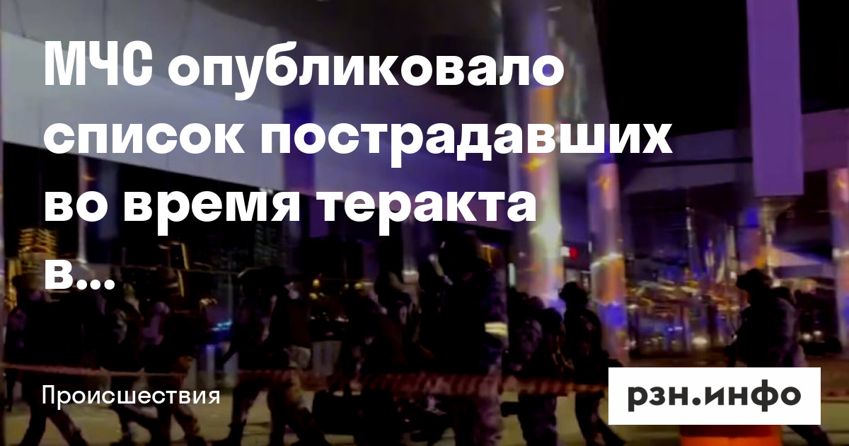 МЧС РФ опубликовало список пострадавших при теракте в «Крокус сити холле», который случился в пятницу, 22 марта. По состоянию на 4:00, в нем 99 человек.