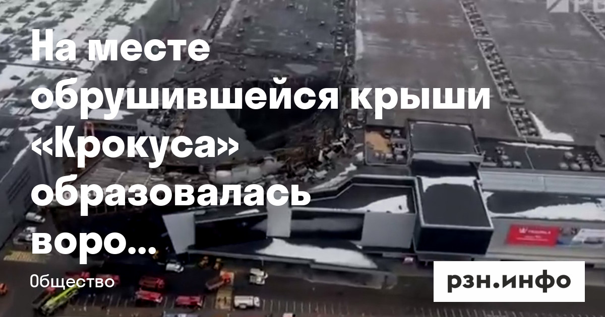 На месте обрушившейся крыши «Крокуса» образовалась воронка