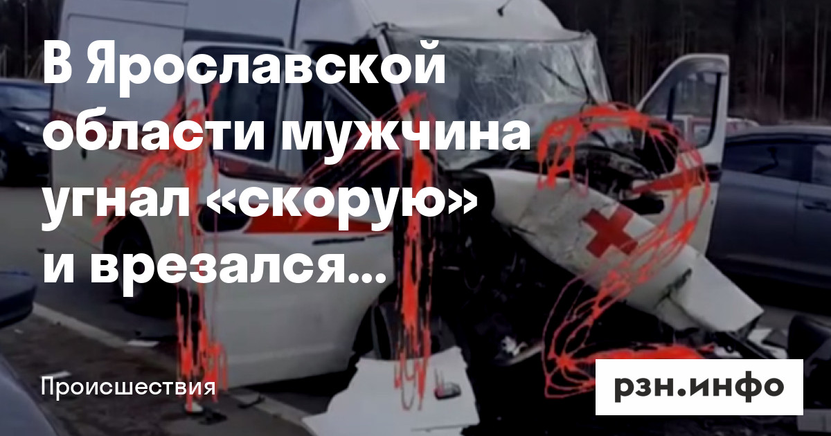 В Ярославской области мужчина угнал «скорую» и врезался в бензовоз. Об этом пишут «Плохие новости».