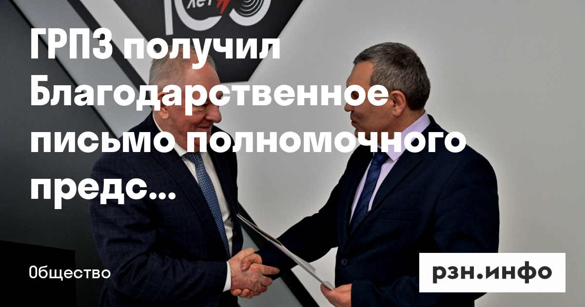 Государственный Рязанский приборный завод (ГРПЗ, входит в КРЭТ Госкорпорации Ростех) отмечен Благодарственным письмом полномочного представителя Президента РФ в Центральном федеральном округе Игоря Щеголева.