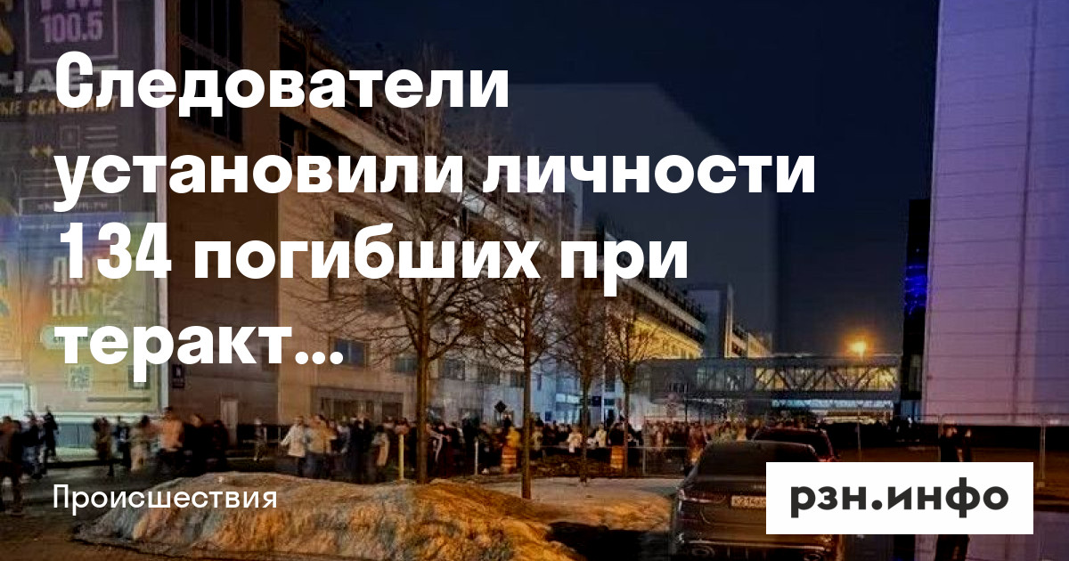 На данный момент удалось установить личности 134 погибших во время теракта в «Крокус Сити Холле». Ведется работа с потерпевшими, сообщил СК России в субботу, 30 марта, в Telegram-канале.