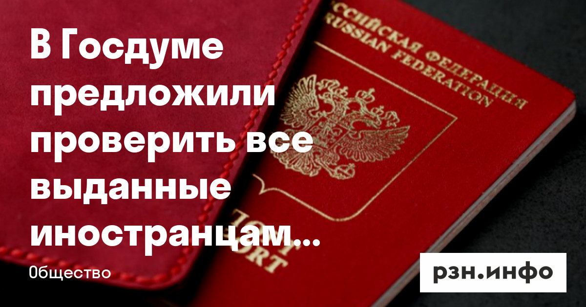 В Госдуме предложили проверить все выданные иностранцам паспорта за 10 лет