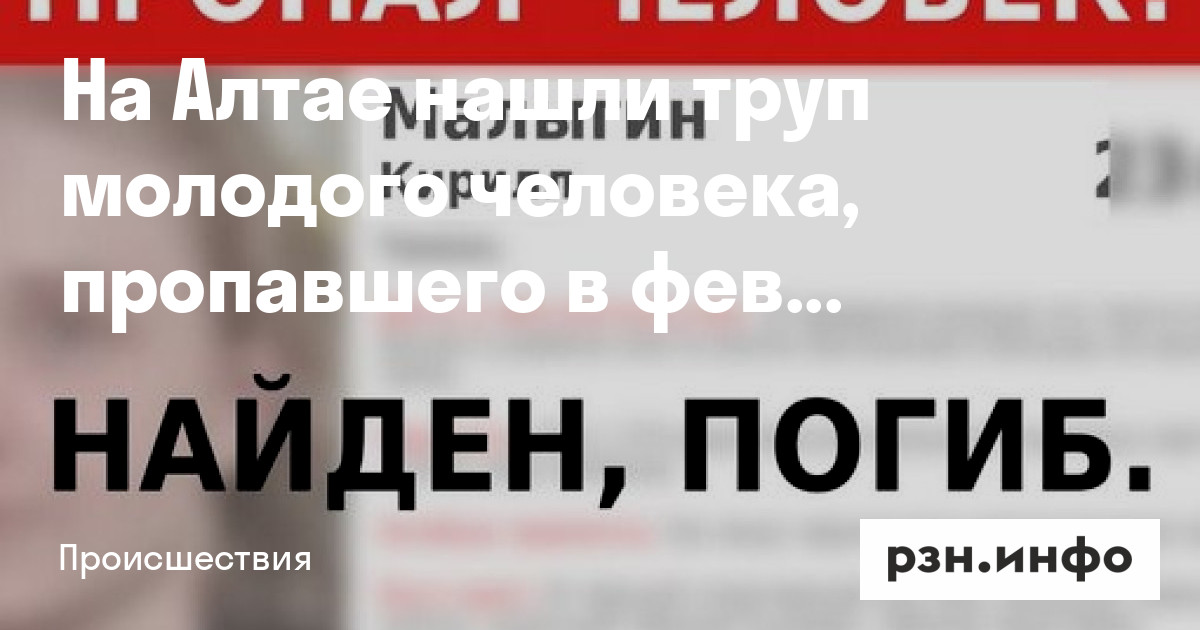 На Алтае нашли труп молодого человека, пропавшего в феврале