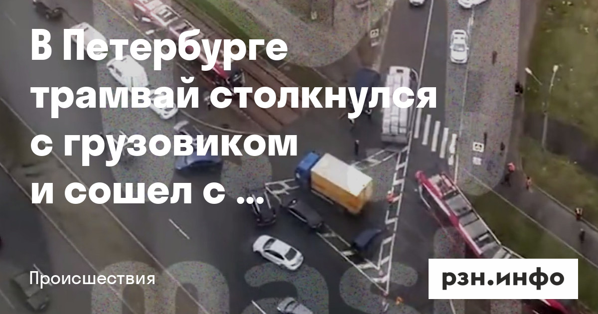 В Петербурге трамвай столкнулся с грузовиком и сошел с рельсов. Об этом сообщает «Mash на Мойке».