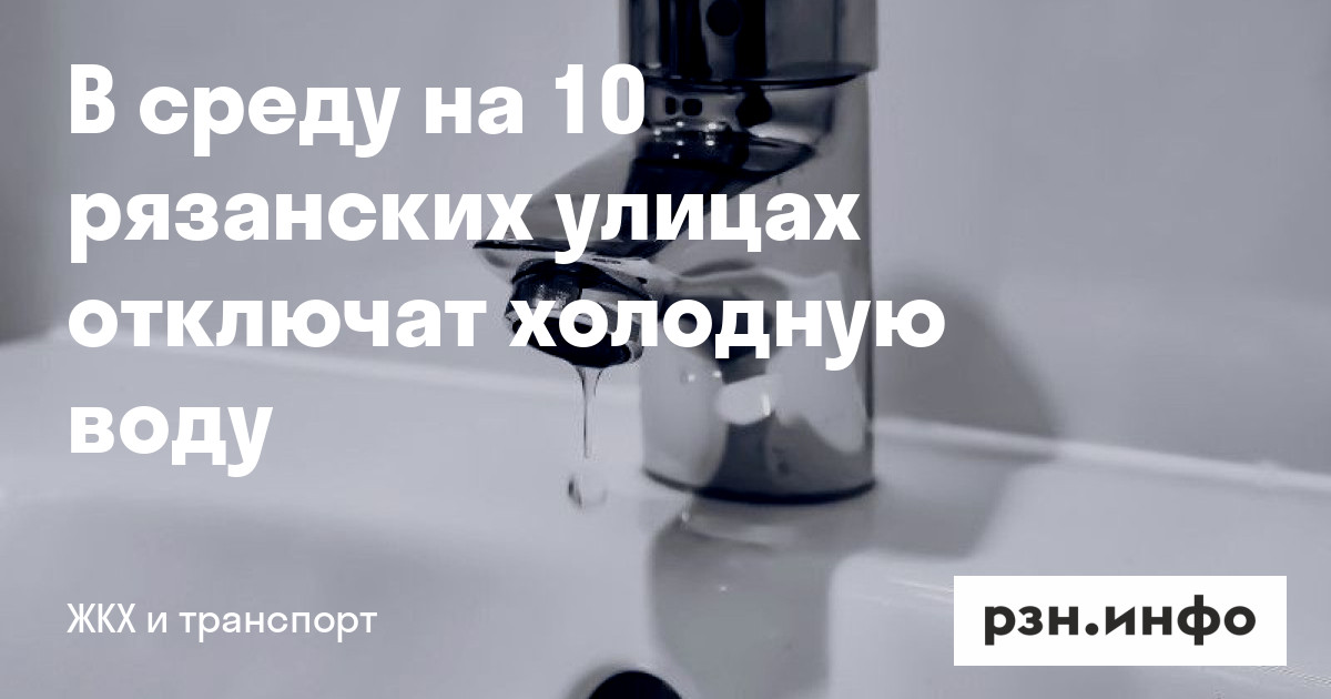 В среду на 10 рязанских улицах отключат холодную воду. Об этом сообщает сайт «Водоканала».