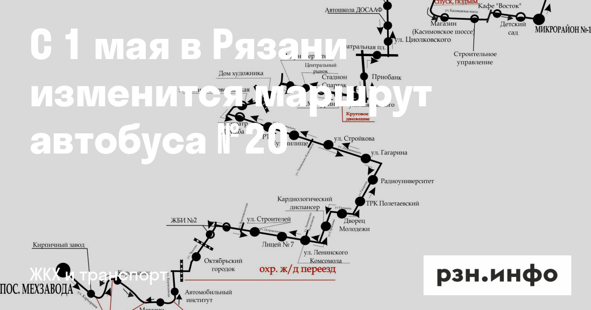С 1 мая в Рязани изменится маршрут автобуса № 20